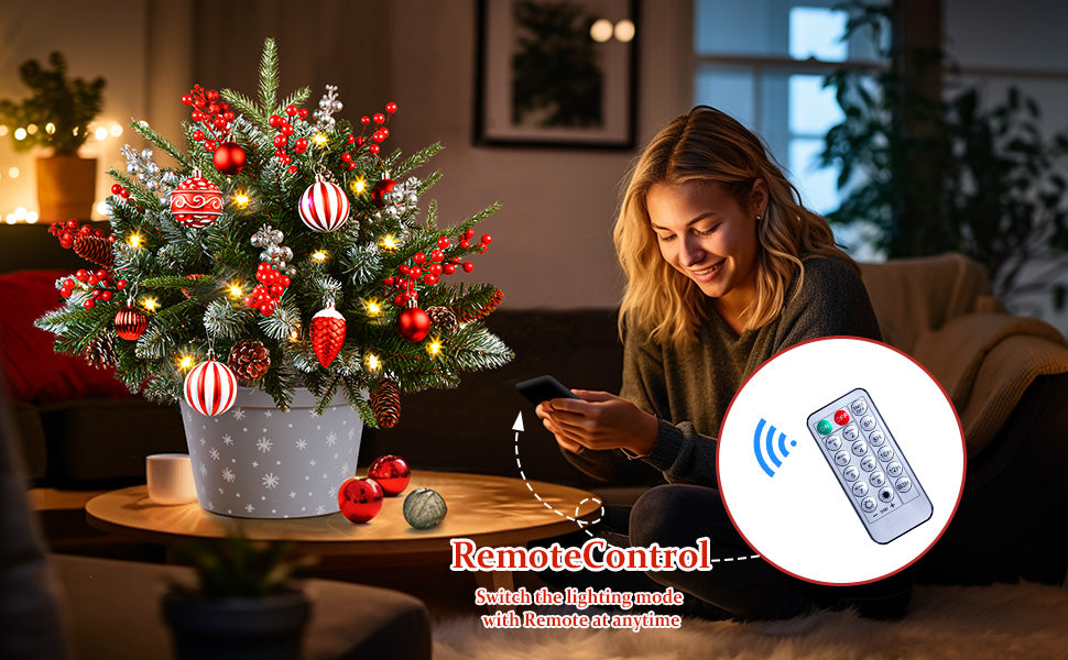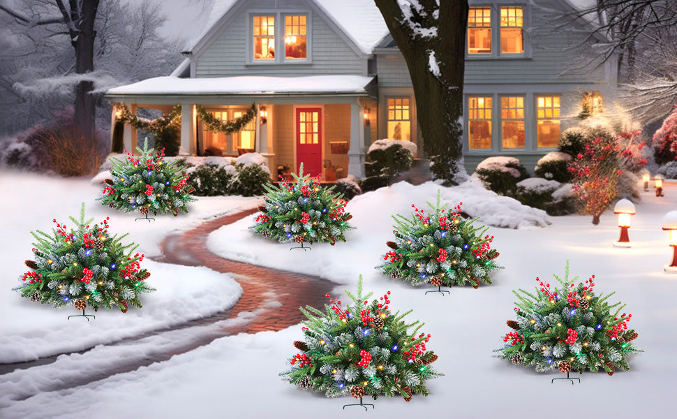 18 Inch Lighted Outdoor Small Christmas Tree with Remote-2 Packs