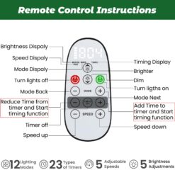 - 🎄【Remote Control】23 kind of timer choices + 5 levels of brightness + 5 levels of speeds + 12 different lighting modes for you to choose. It operated by 2AAA battery. (Note: batteries are not included.)