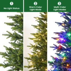 - 🎄【Magical Lighting】: The lights are conveniently pre-strung on the branches, with 90 LED lights on the string that can emit two colors: warm white and multicolored. A remote control allows for 12 different light patterns, preventing monotony and offering a variety of light shows.