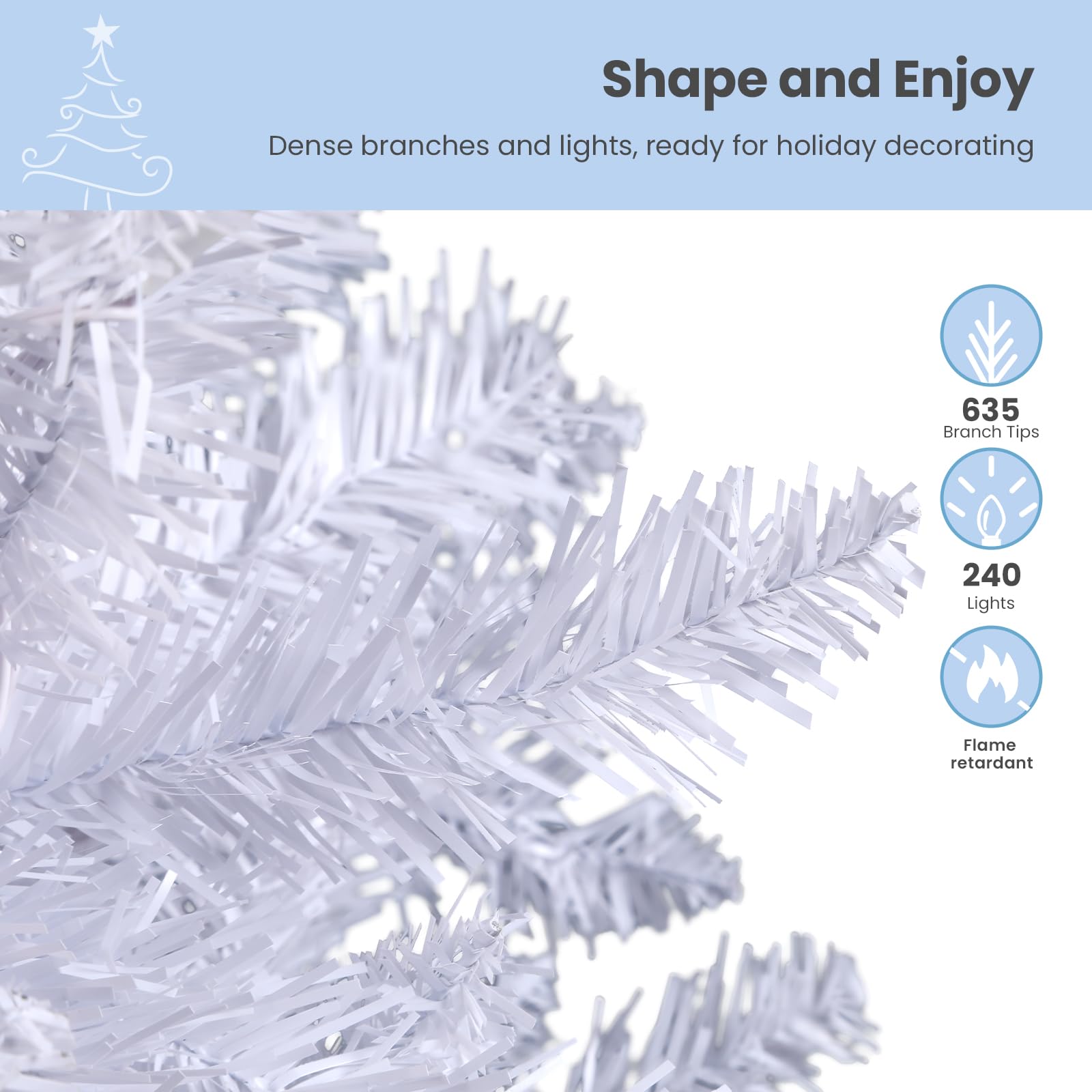 - 🎄【Multi-Color LED Lights】The prelit artificial Christmas trees come with 240 LED multi-color lights. You do not need to add extra lights.