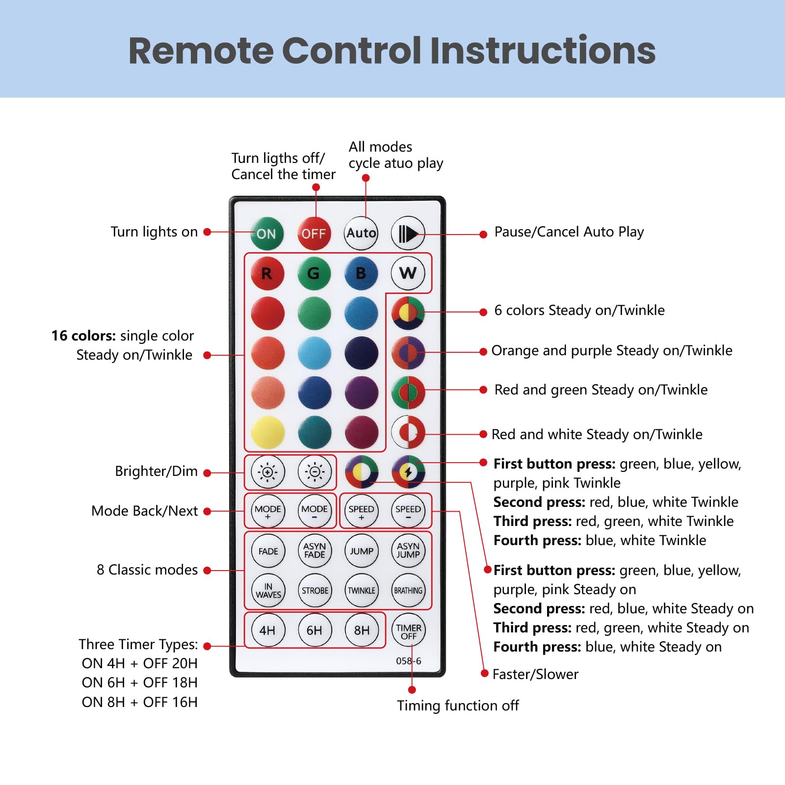 - 🎄【Pre-lit Lights with Remote】There are 5 brightness levels and 8 lighting modes.You can choose different lighting modes by remote control to get your desired atmosphere.