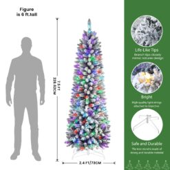 Be the first to review “7.5ft Prelit Multi-Color RGB Lights Snow Flocked Artificial Hinged Slim Pencil Christmas Tree with Remote Control” Cancel reply