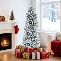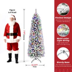 7ft Pencil Flocked Spruce Christmas Tree with Multi-color Lights