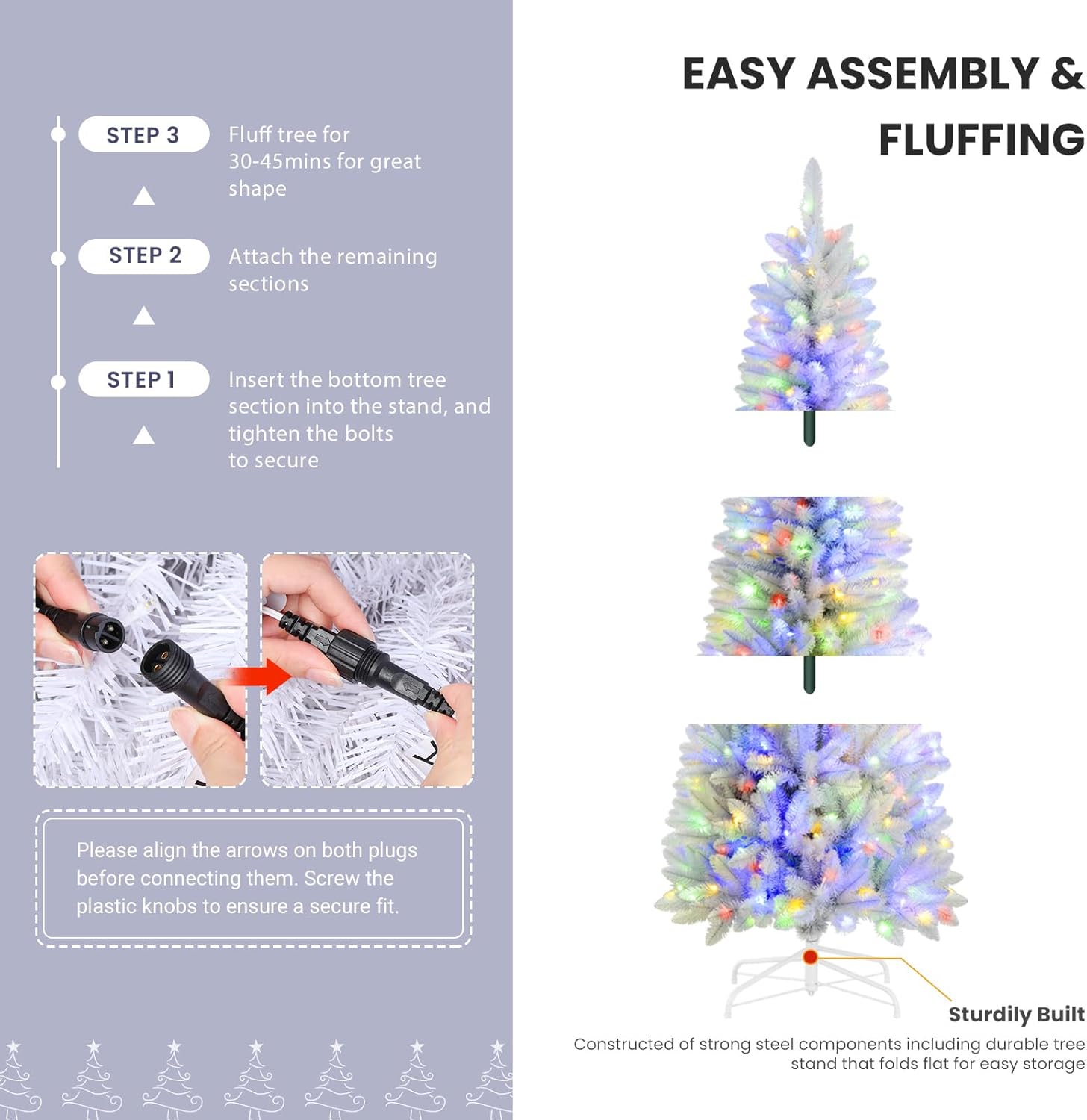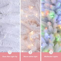 - 🎄【Multi-Color LED Lights】The prelit artificial Christmas trees come with 100 LED warm white & multi color lights. You can choose the proper lights mode at will to make it more beautiful.