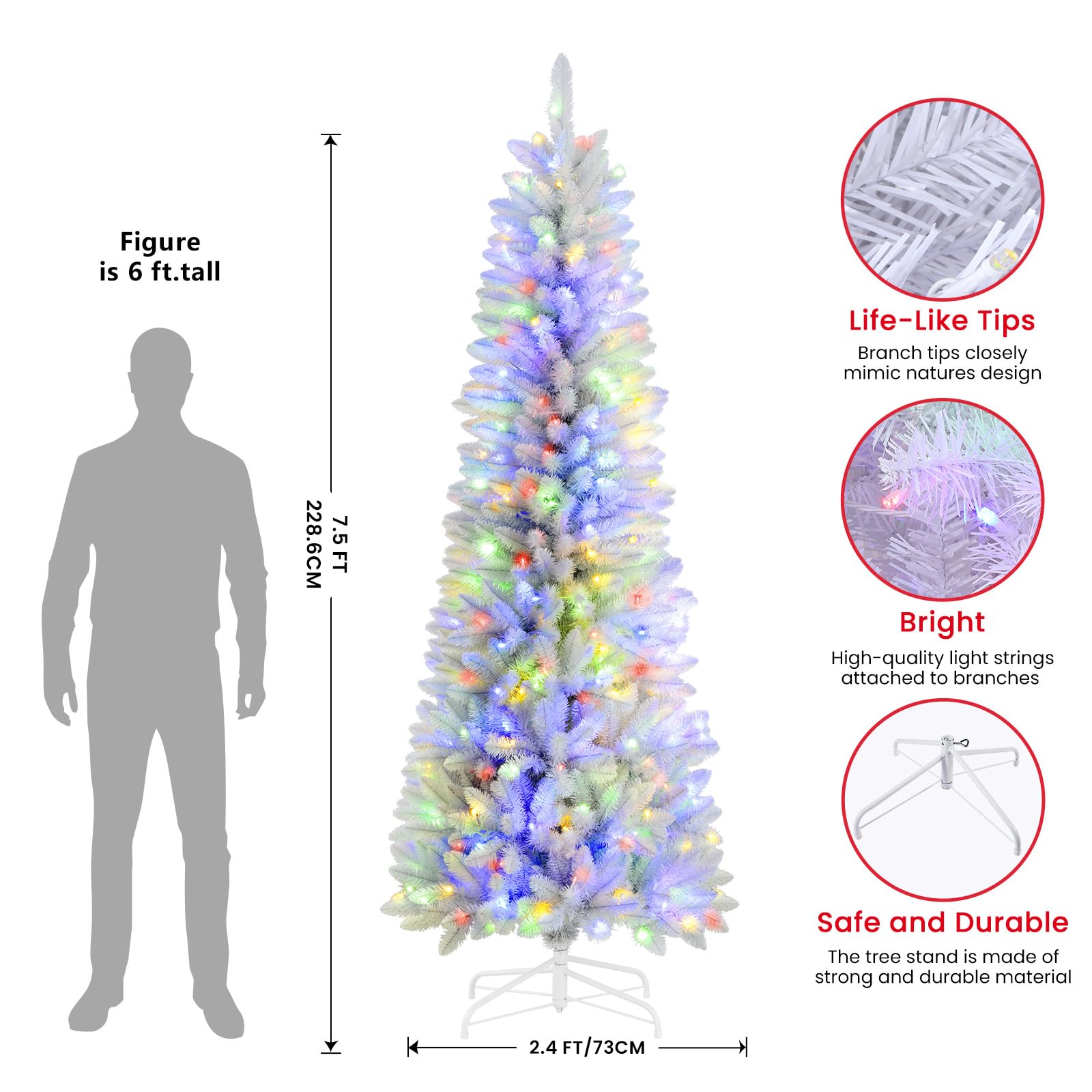 - 🎄【Slim Pencil Design】This Christmas tree is designed as a slim pencil, which is unique and space-saving. Number of tips (4ft/5ft/6ft/7.5ft): 1333/1787/2157/2367