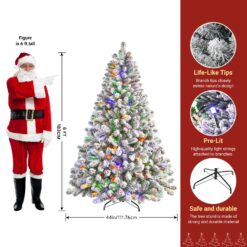White Flocked Spruce Artificial Christmas Trees with Multi-Color Lights