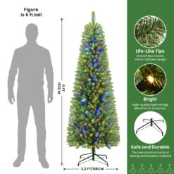 - 🎄【Slim Pencil Design】This Christmas tree is designed as a slim pencil, which is unique and space-saving. The tree stands 7.5 feet in height, with 883 branch tips and a natural green appearance to bring you a lush tree.